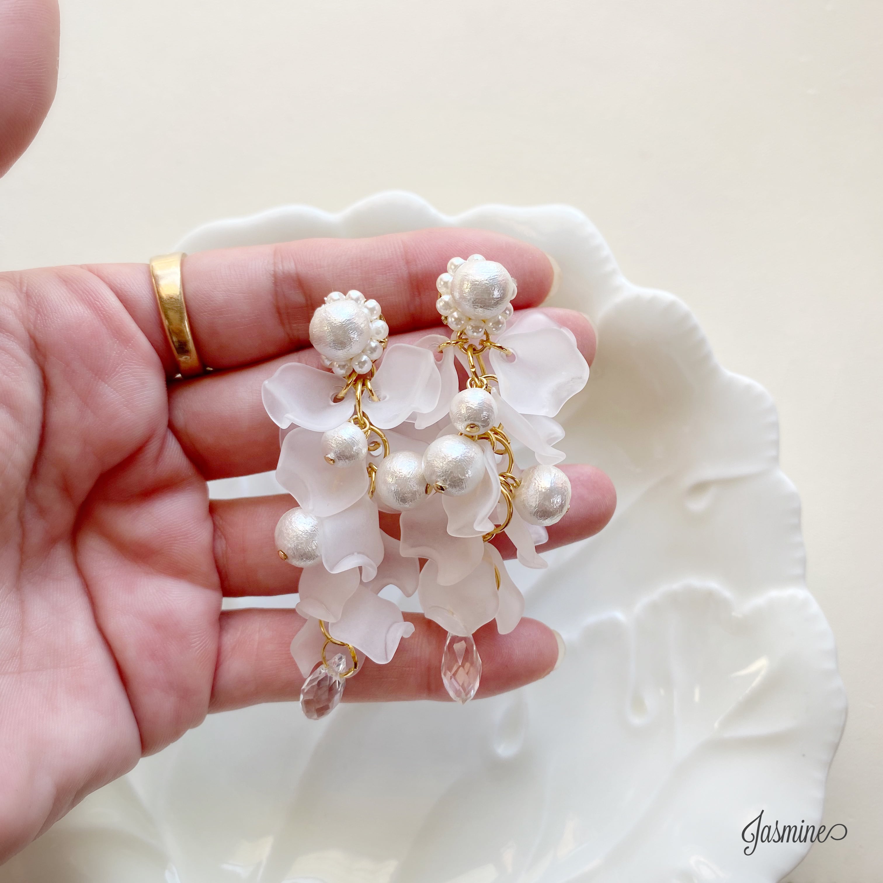 花びらの中にコットンパールをあしらい
